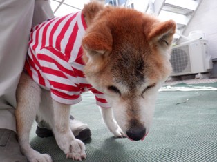 自分からお店の奥へと進んで行った割に、お外に出ると尻尾だら~んなはち丸さん☆