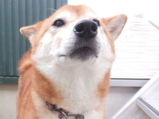 お庭でおしっこして少ししてからお部屋に戻る~と扉の前で待機していました(≧▽≦)