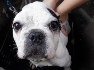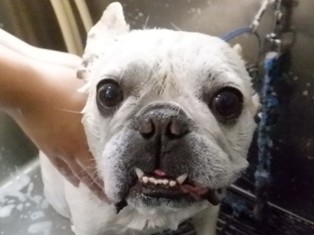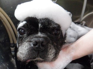 朝ごはん食べてお昼のお散歩前にシャンプータイムです!
