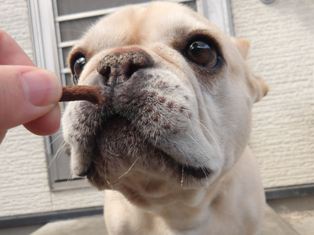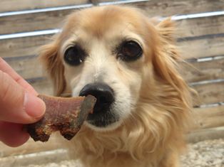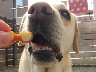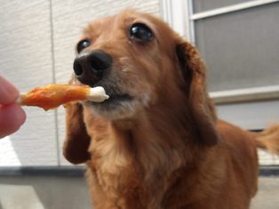 お庭ではおやつをクンクンするだけで食べず…( ゚Д゚)