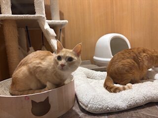 今日は床に降りてきてのんびりお二人でお過ごし中